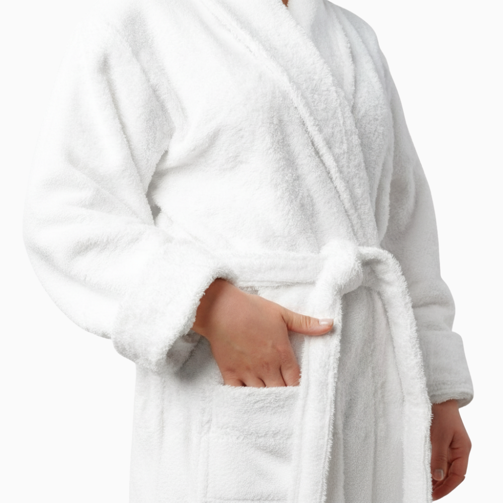 Cotton bathrobes are made for superior comfort and absorbency. The natural fibers offer breathability and softness, making them perfect for after-bath or lounging. Choose from various weights (GSM) to provide the desired thickness and warmth. Cotton robes are hypoallergenic, easy to care for, and retain their quality after repeated washing, making them a timeless staple.